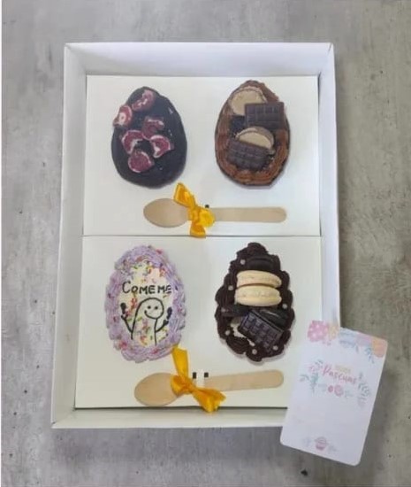4 huevos de pascuas para degustación, rinde 6 a 8 porciones aproximadamente.