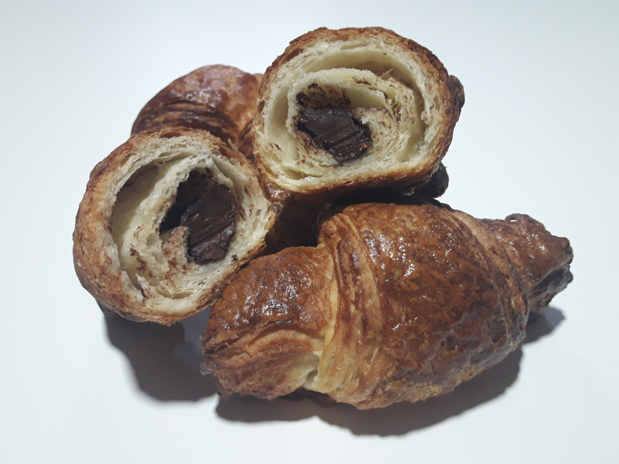 Producto de origen francés, hojaldrada, rellena con chocolate, Nutella o crema pastelera.